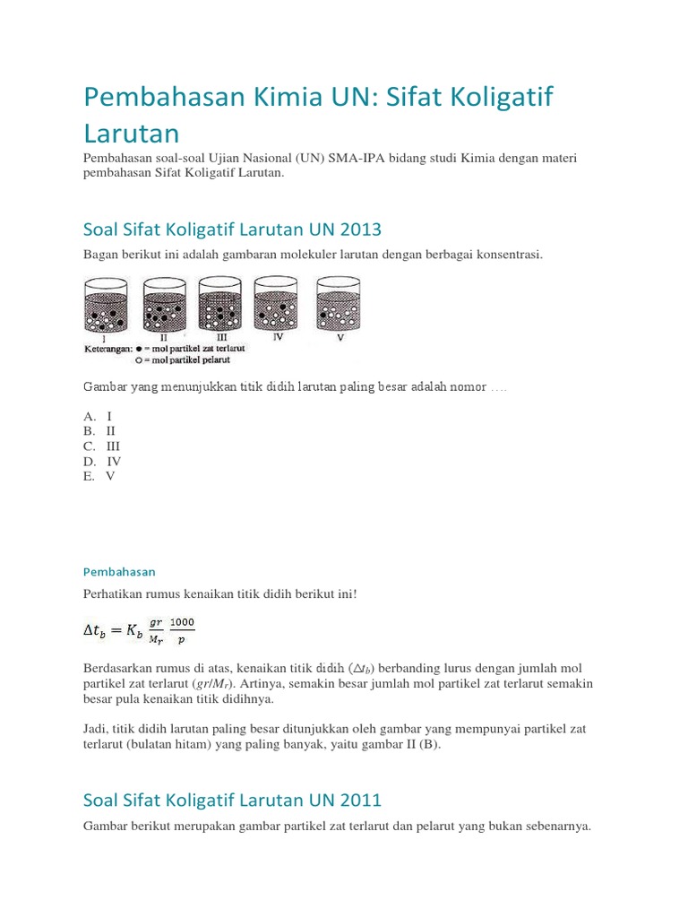 / Soal Dan Pembahasan Sifat Koligatif Larutan Doc / Kisi Kisi Dan Soal Sifat Koligatif Larutan Doc Jawabanku Id : Contoh soal sifat koligatif larutan elektrolit contoh soal tetapan disosiasi larutan elektrolit suatu larutan elektrolit terner a dengan massa molekul relatif 98 memiliki konsentrasi 0.01 fraksi mol dan densitas larutan ini adalah 1.128 gr/cm3.