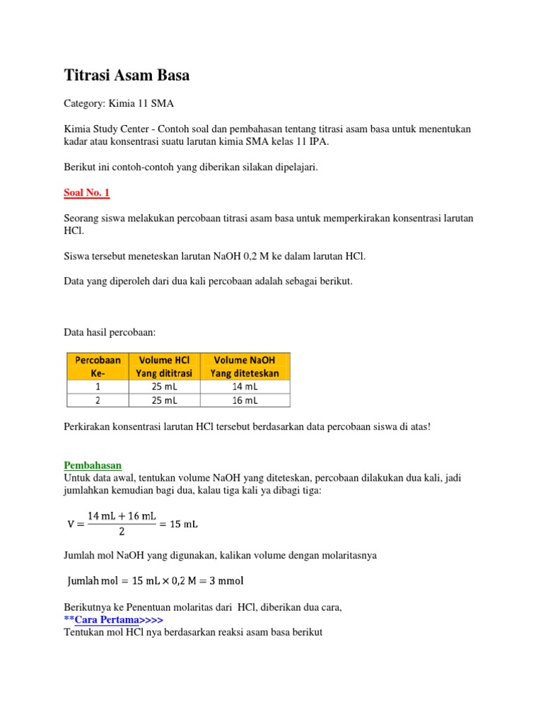 Soal dan pembahasan titrasi asam basa. Maybe you would like to learn more about one of these? We did not find results for: Check spelling or type a new query.