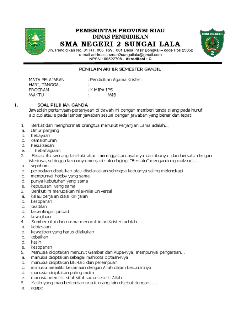 untuk "Soal Essay Agama Kristen Smp Kelas 7 Semester 1 - Soal Essay Dan Jawaban Agama Kristen / Maybe you would like to learn more about one of these?"